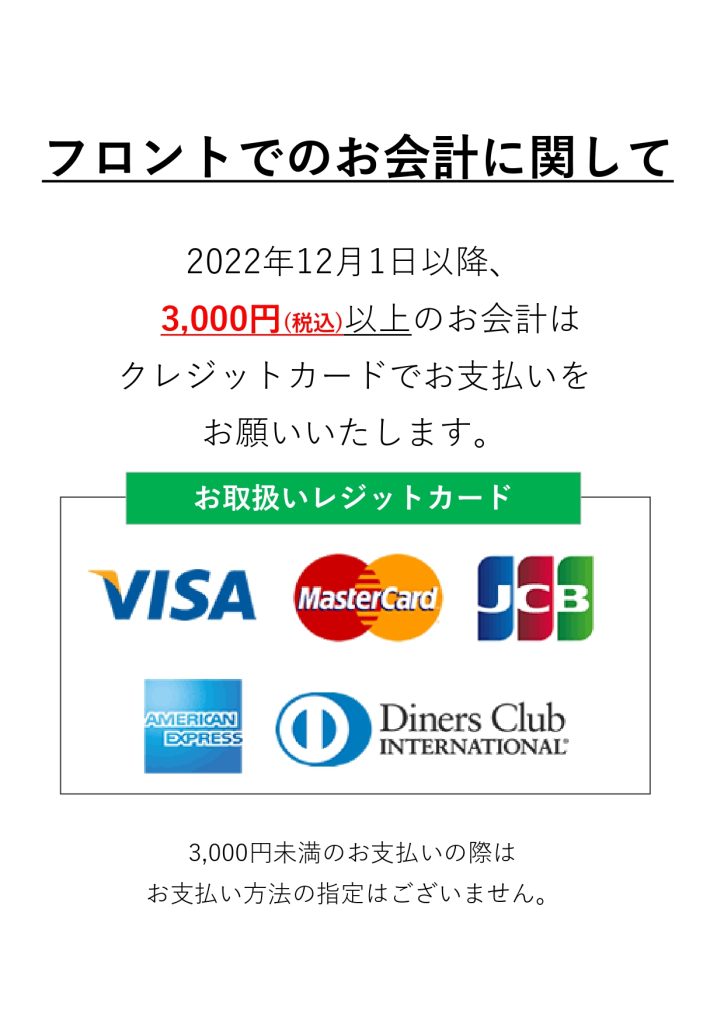 3,000円以上のご精算につきましては、