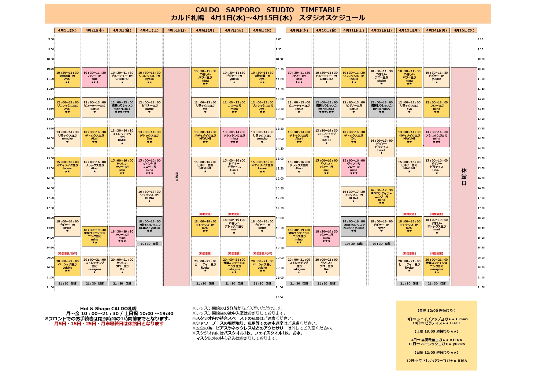 【26年4月以降】営業時間およびレッスン本数変更のご案内