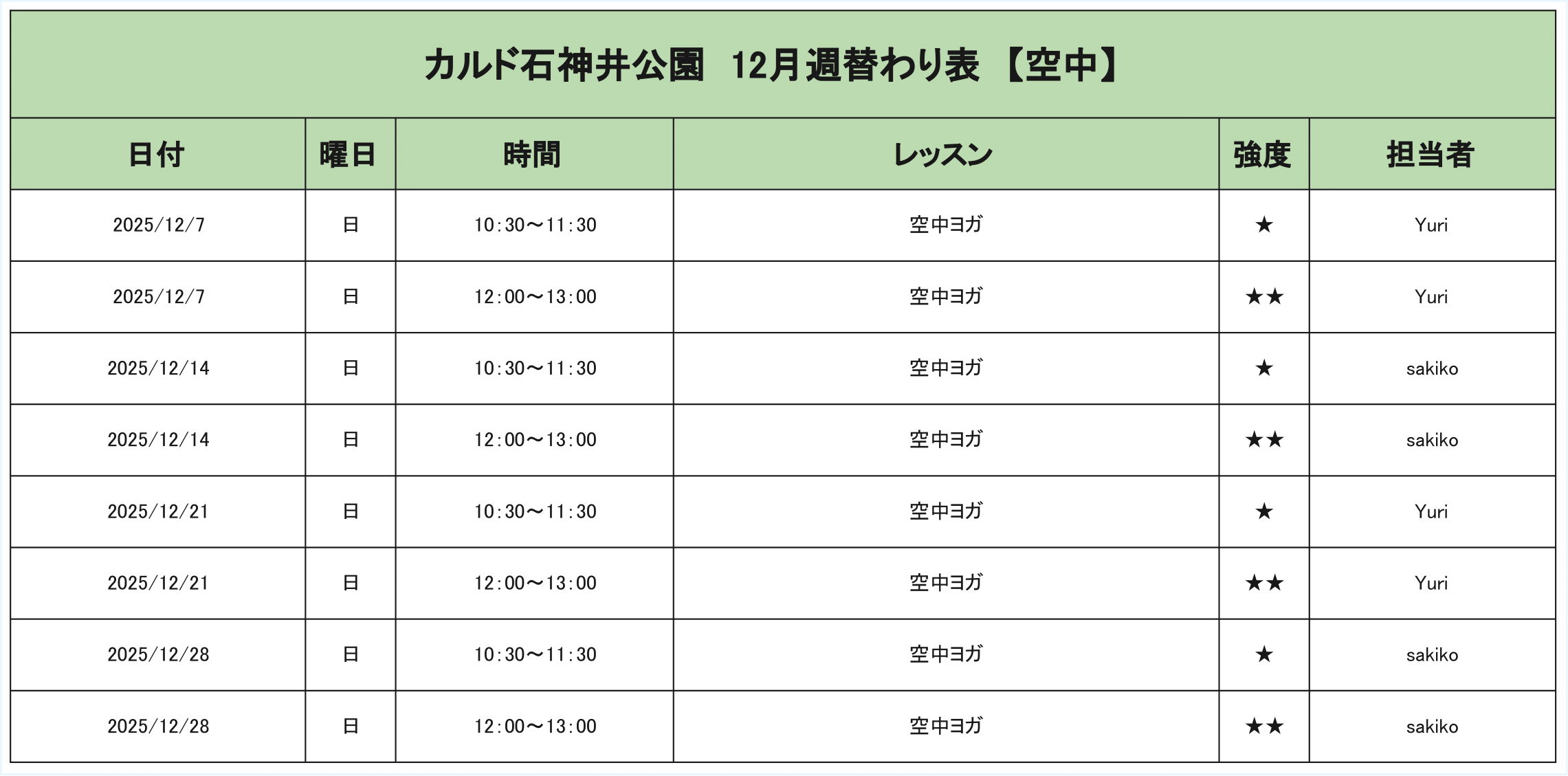 | 空中ヨガ マンスリー4 | 税込12,980円 | 全営業時間利用可能 月4回まで ※繰り越し無し レッスン参加時 3,960円 |