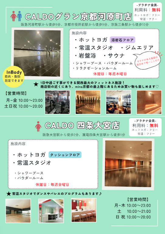 四条大宮店は女性専用施設です。常温スタジオがあり、ホットヨガだけでなく