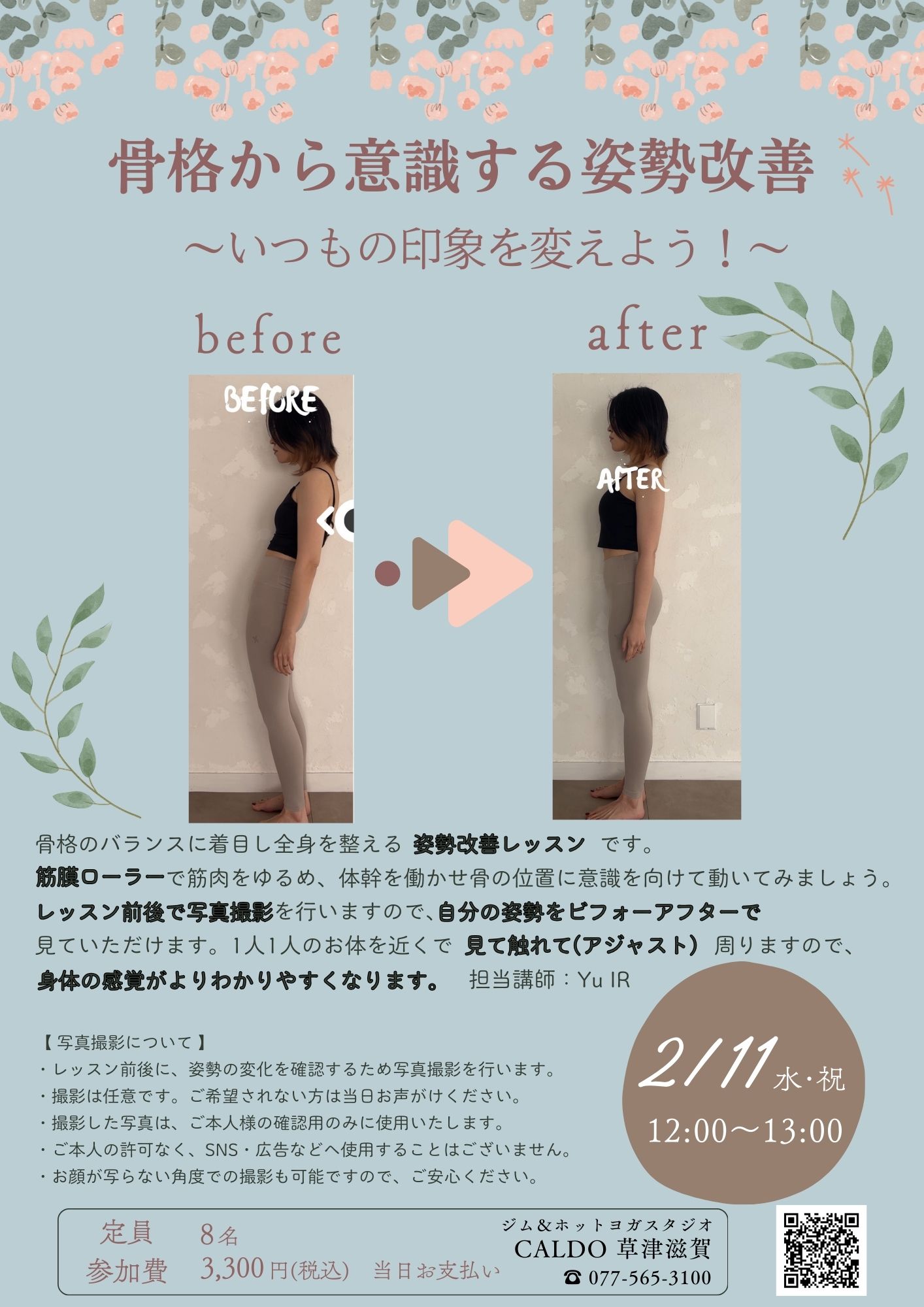 ヨガのポーズを通じて体をほぐし、美しい姿勢を維持するために必要な筋肉に刺激を与えることで、正しい姿勢へと導くプログラムです。