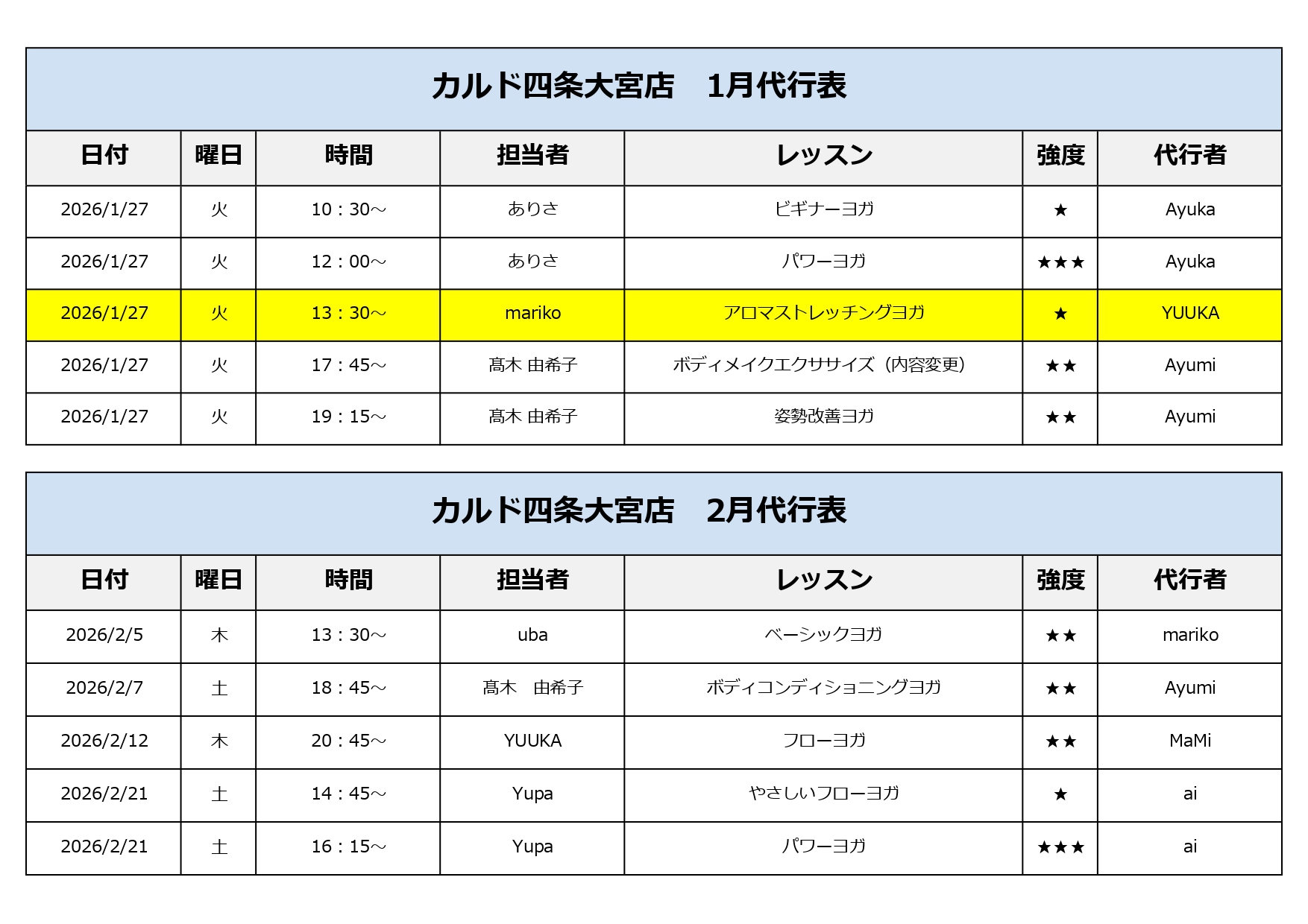 代行表 ※1/26更新