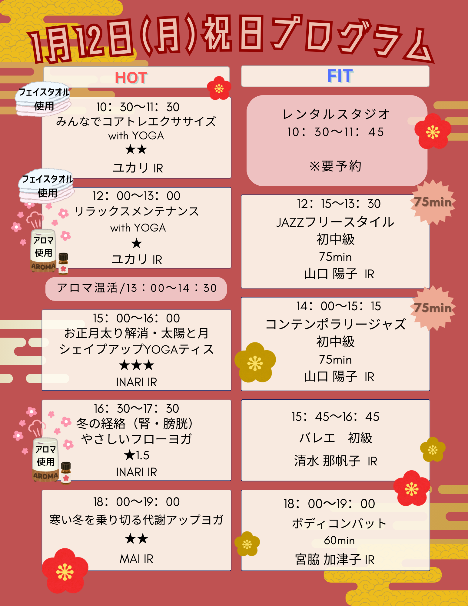体のゆがみを取り除き、全身を引き締めてメリハリのあるボディスタイルを作っていきます。運動量はやや多めに設定していますので、ダイエットしたい方に特におすすめです。効率的にダイエットをしたい方はもちろん、心と体をすこやかに保ちたい方や、たくさん体を動かしてスッキリしたい方など、幅広い方から人気があるレッスンです。