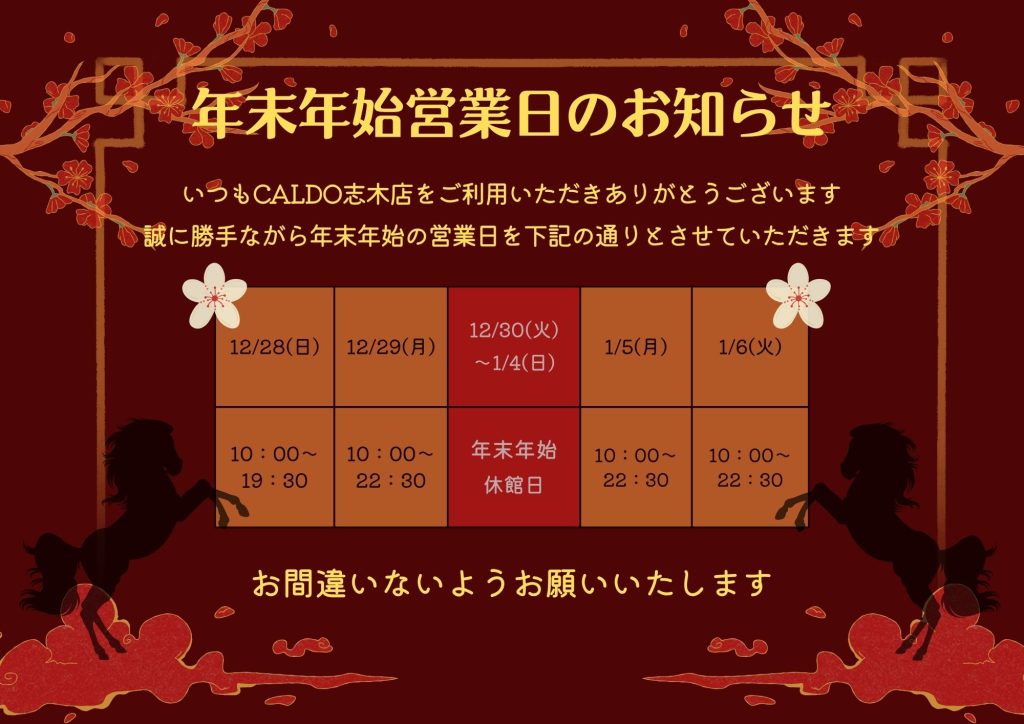 年末年始営業スケジュール
