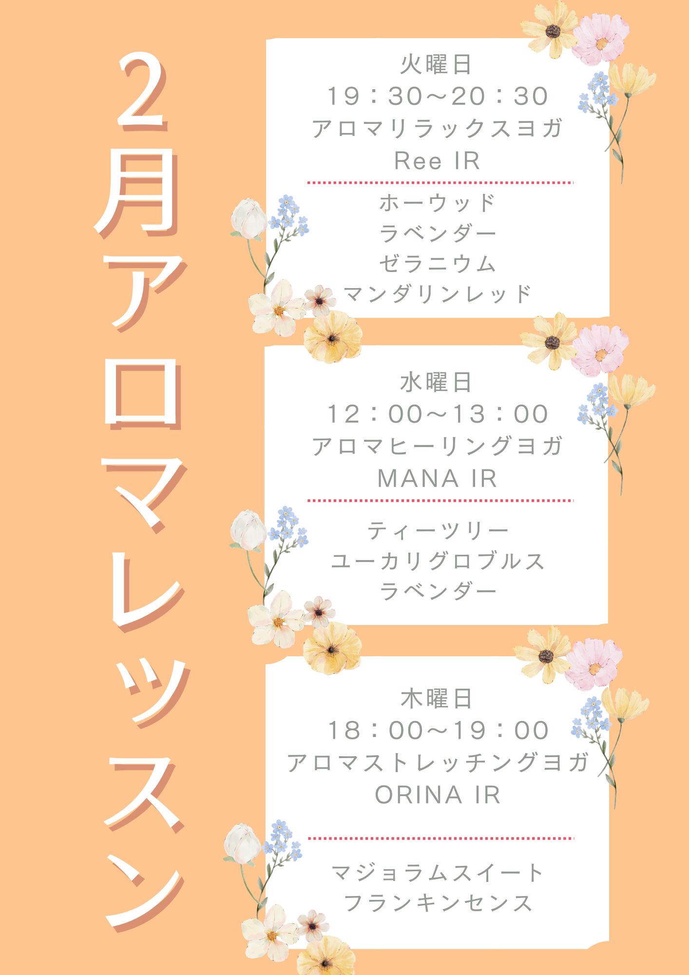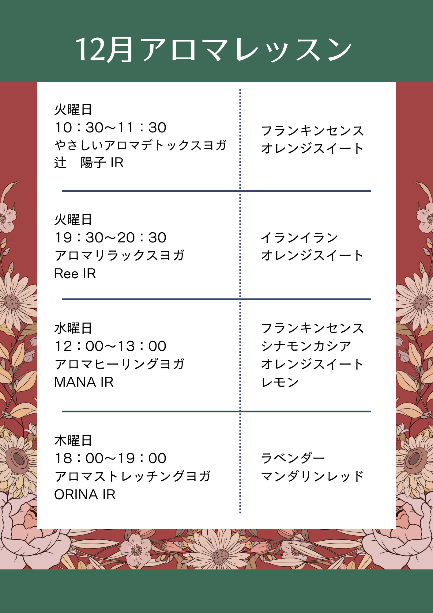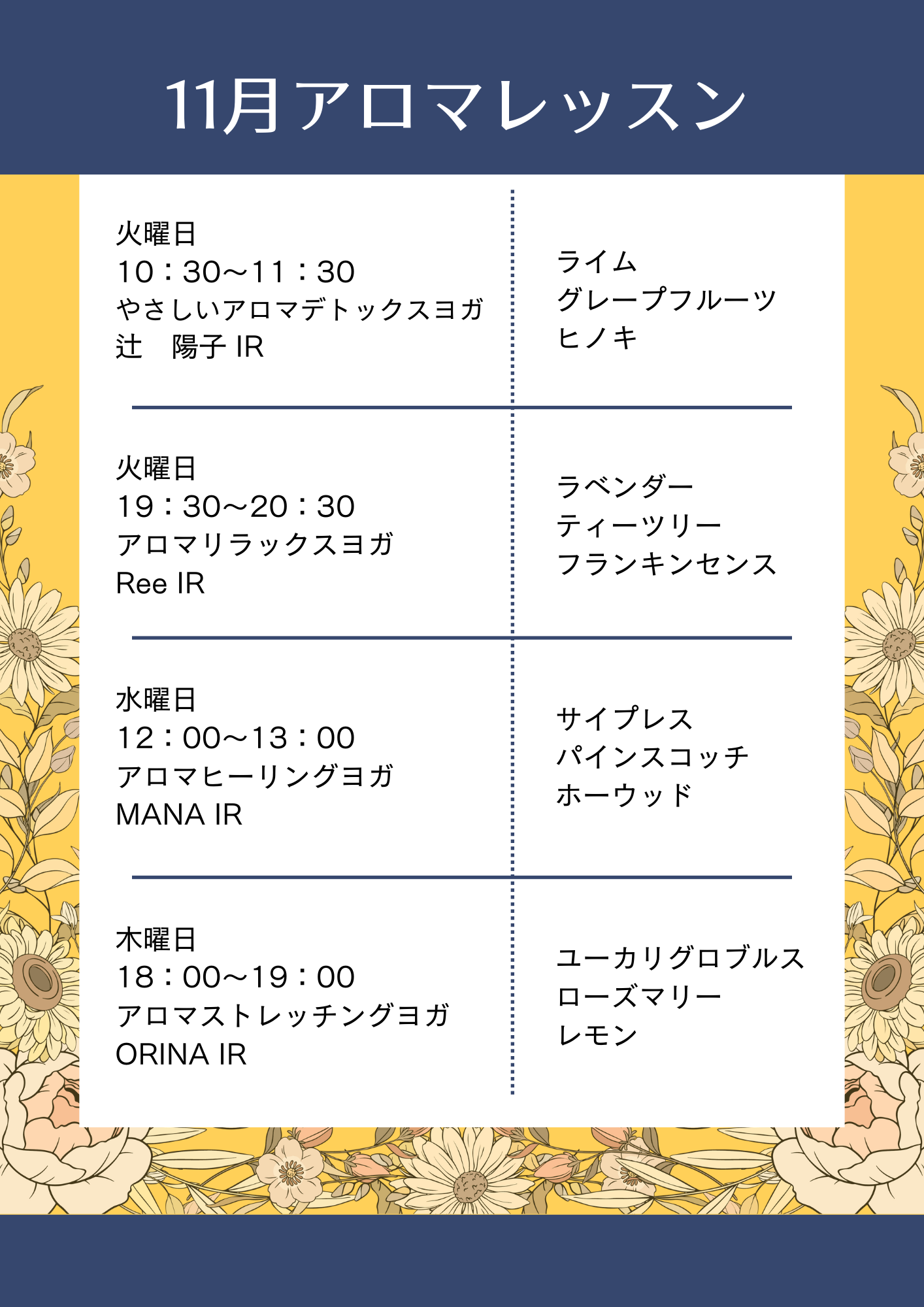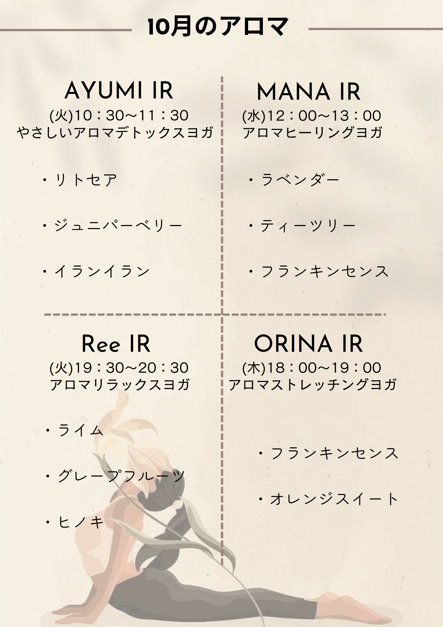 身体と心のバランスに働きかけるアロマブレンドの香りの空間でゆったりと呼吸、ポーズを行い、その都度香るアロマの香りを楽しみながら日々の疲れをリセットしていきます。
