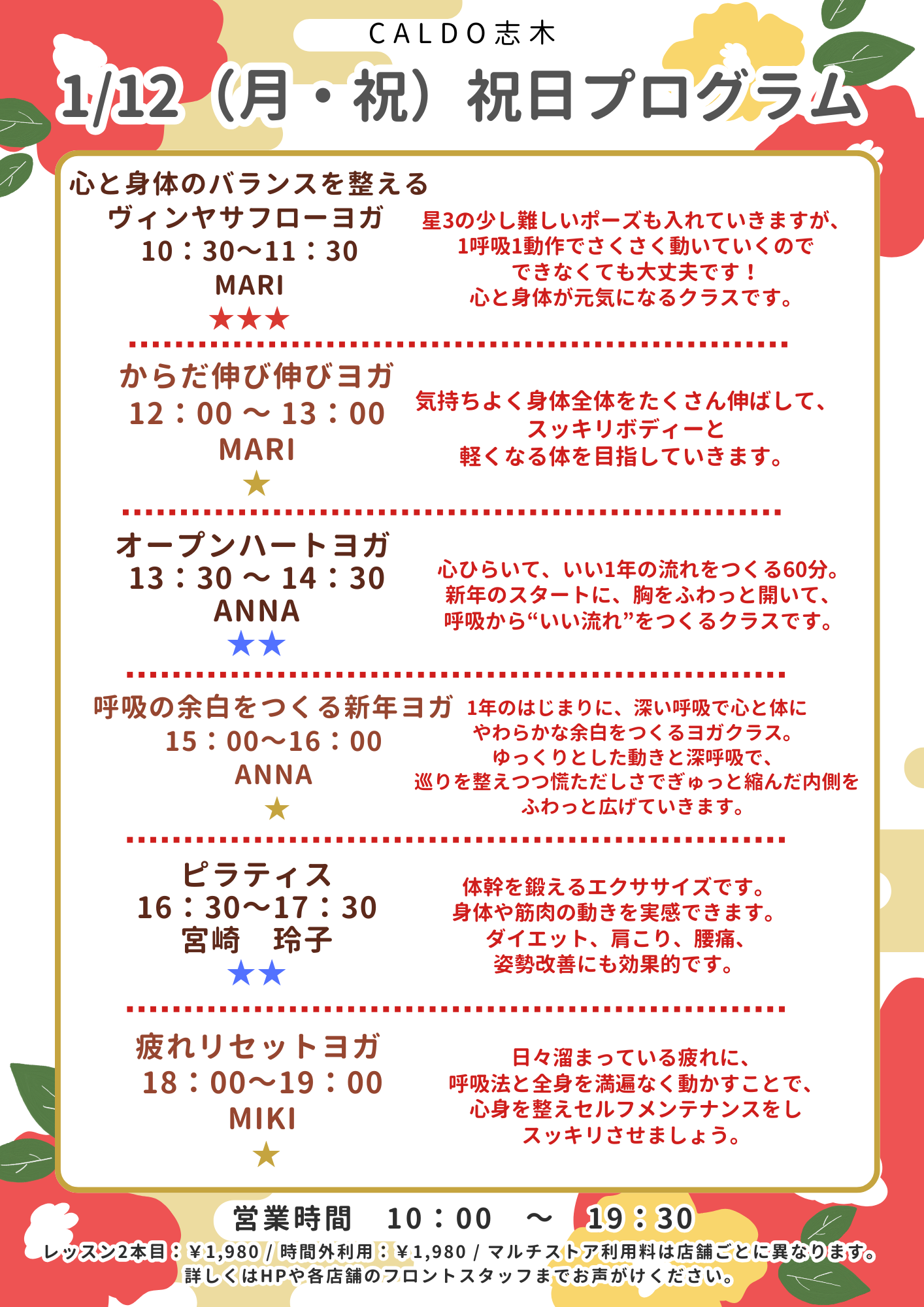 少ないポーズ数をゆっくり流れるように動いていきます。 運動に自信が無い方やヨガを始めたばかりの方でも安心してご参加いただけます。