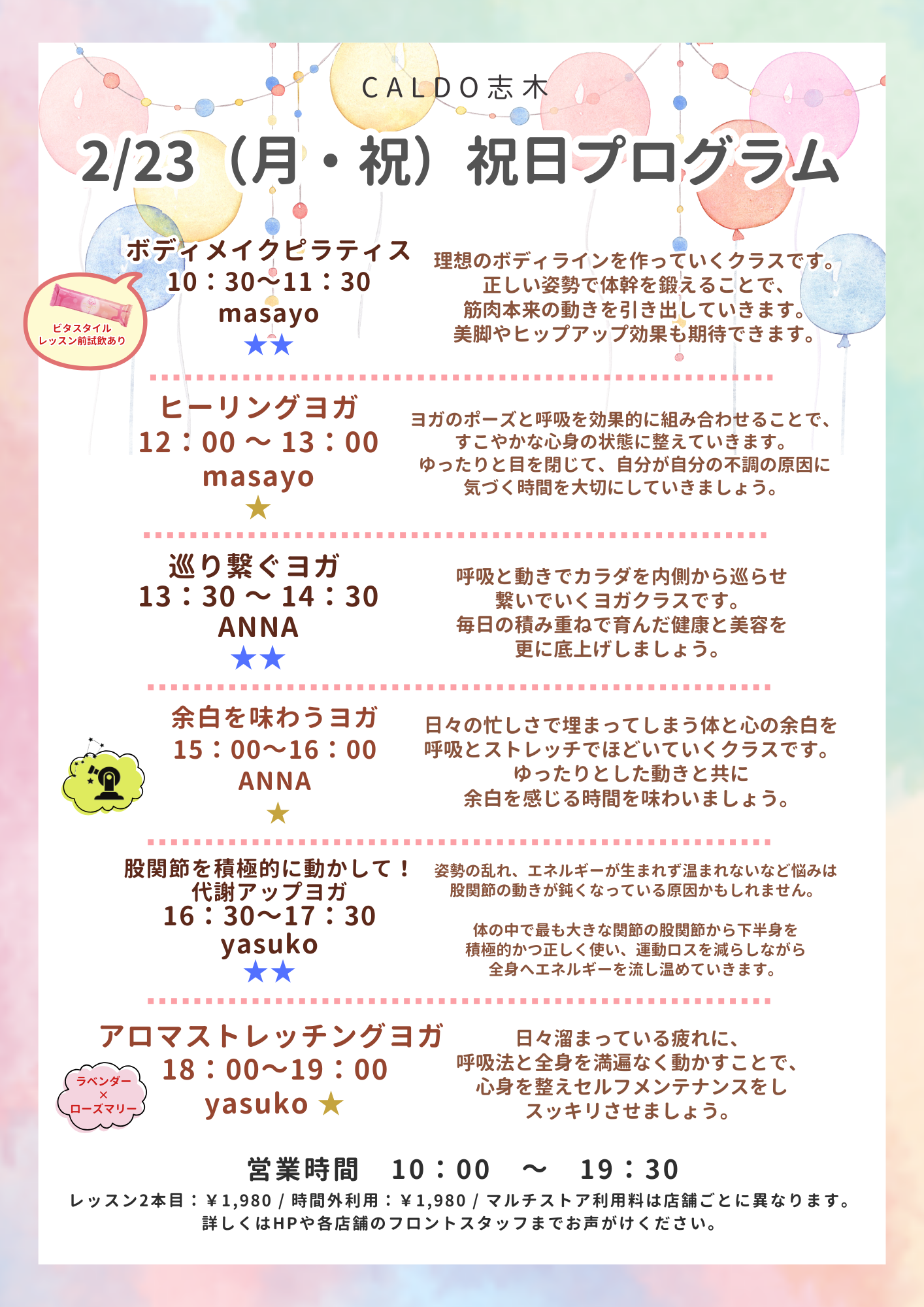 バランスの良いボディラインづくりに効果的なヨガポーズを行っていく、カルドの中でも比較的アクティブなプログラムです。体のゆがみを取り除き、全身を引き締めてメリハリのあるボディスタイルを作っていきます。