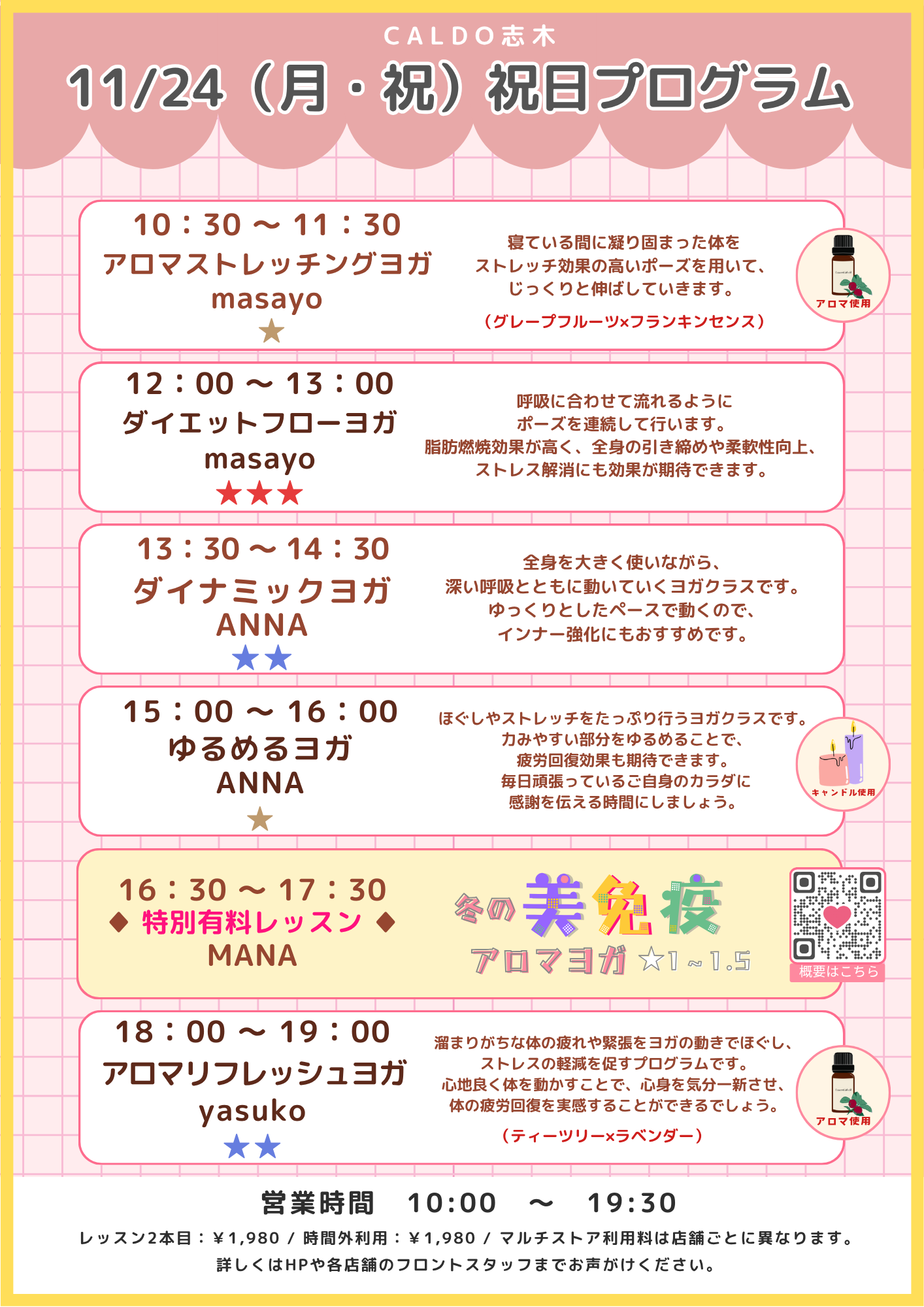 インナーマッスルを動かすポーズを組み合わせながら、呼吸に合わせ心地良く身体を動かしていきます。 お腹周りの引き締めや姿勢改善、腰痛改善改善にも効果的です。