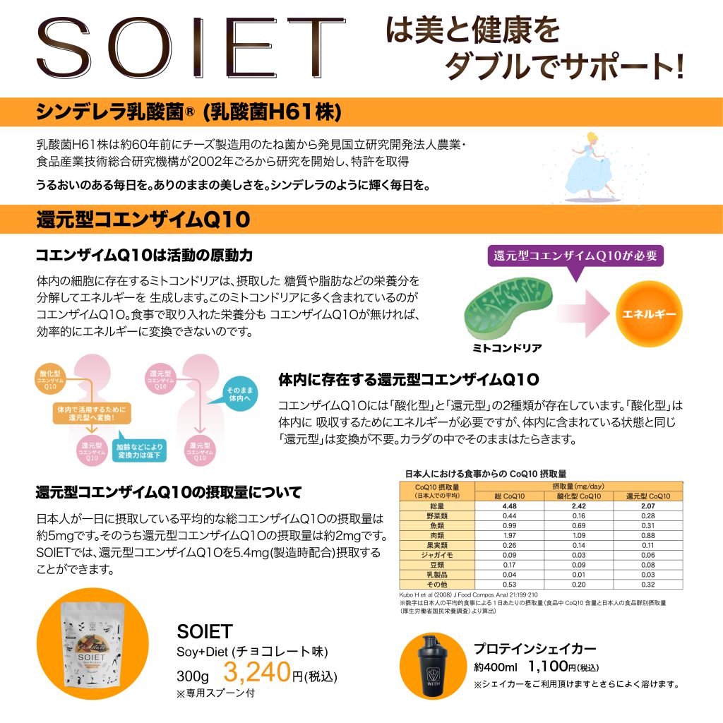②タンパク質だけではなく、シンデレラ乳酸菌® コエンザイムQ10配合✨