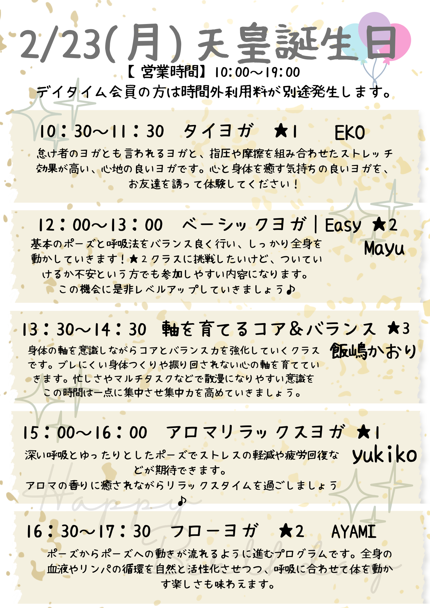 少ないポーズ数をゆっくり流れるように動いていきます。運動に自信が無い方やヨガを始めたばかりの方でも安心してご参加いただけます。