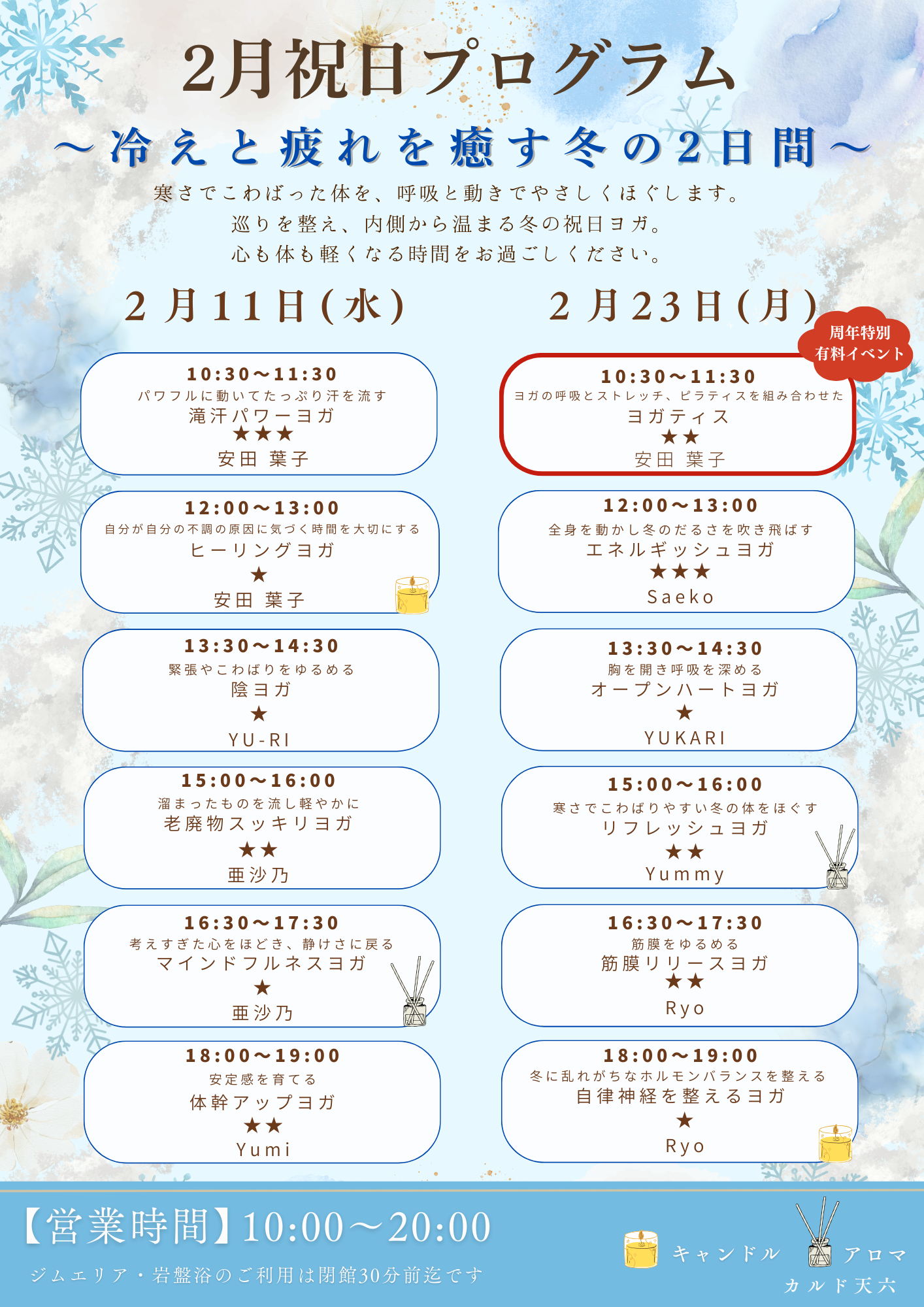 ホットヨガによる血液やリンパの流れを促進する効果に加え、ホルモンバランスの安定や美肌効果、たるみ解消など、さまざまな角度からのボディケアを目的としたプログラムです。難度は低めに設定していますので、初心者でも安心して受講することができます。