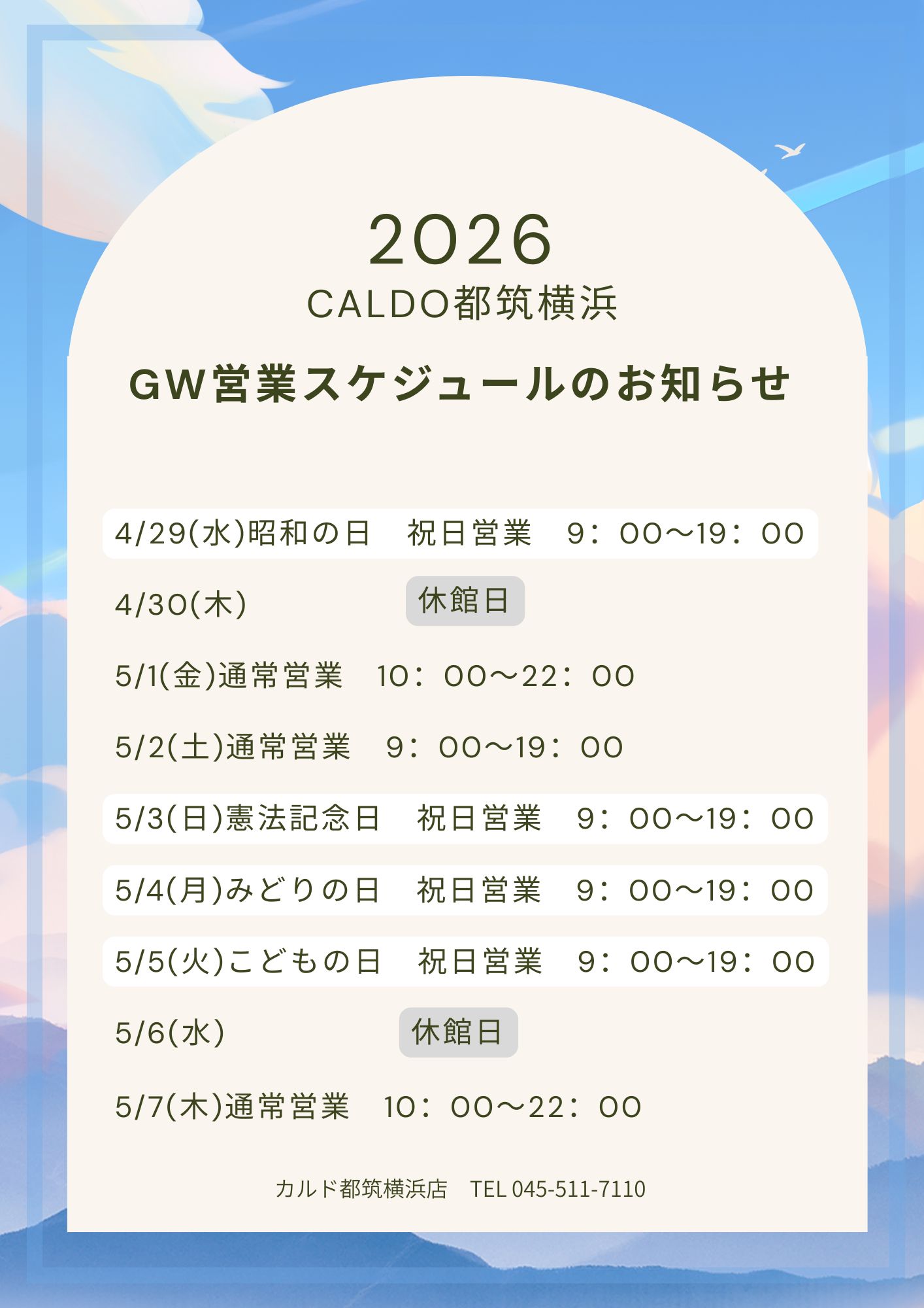 ゴールデンウイーク営業スケジュール