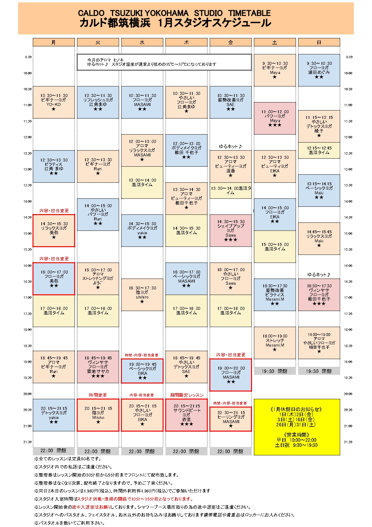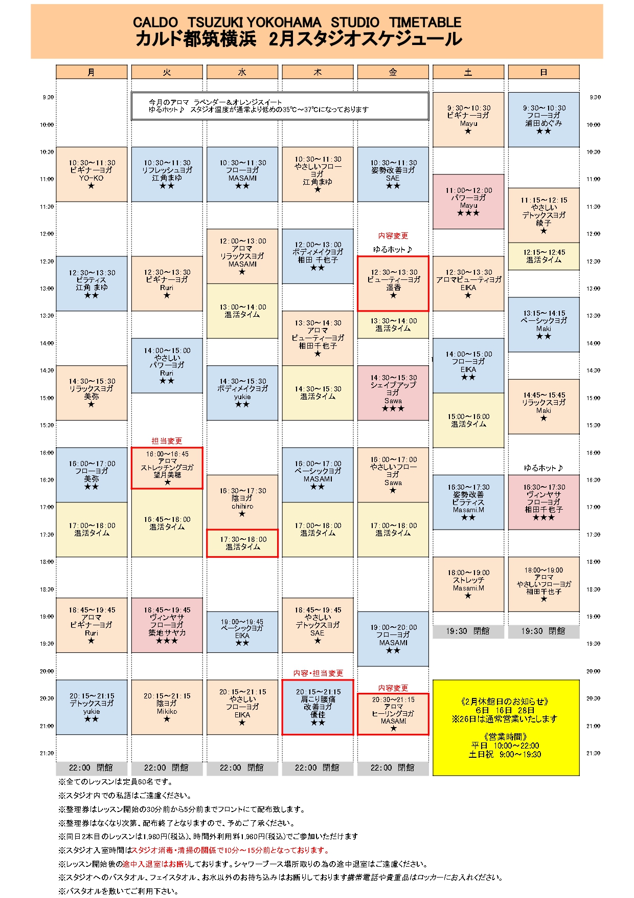 1週間のレッスンスケジュール