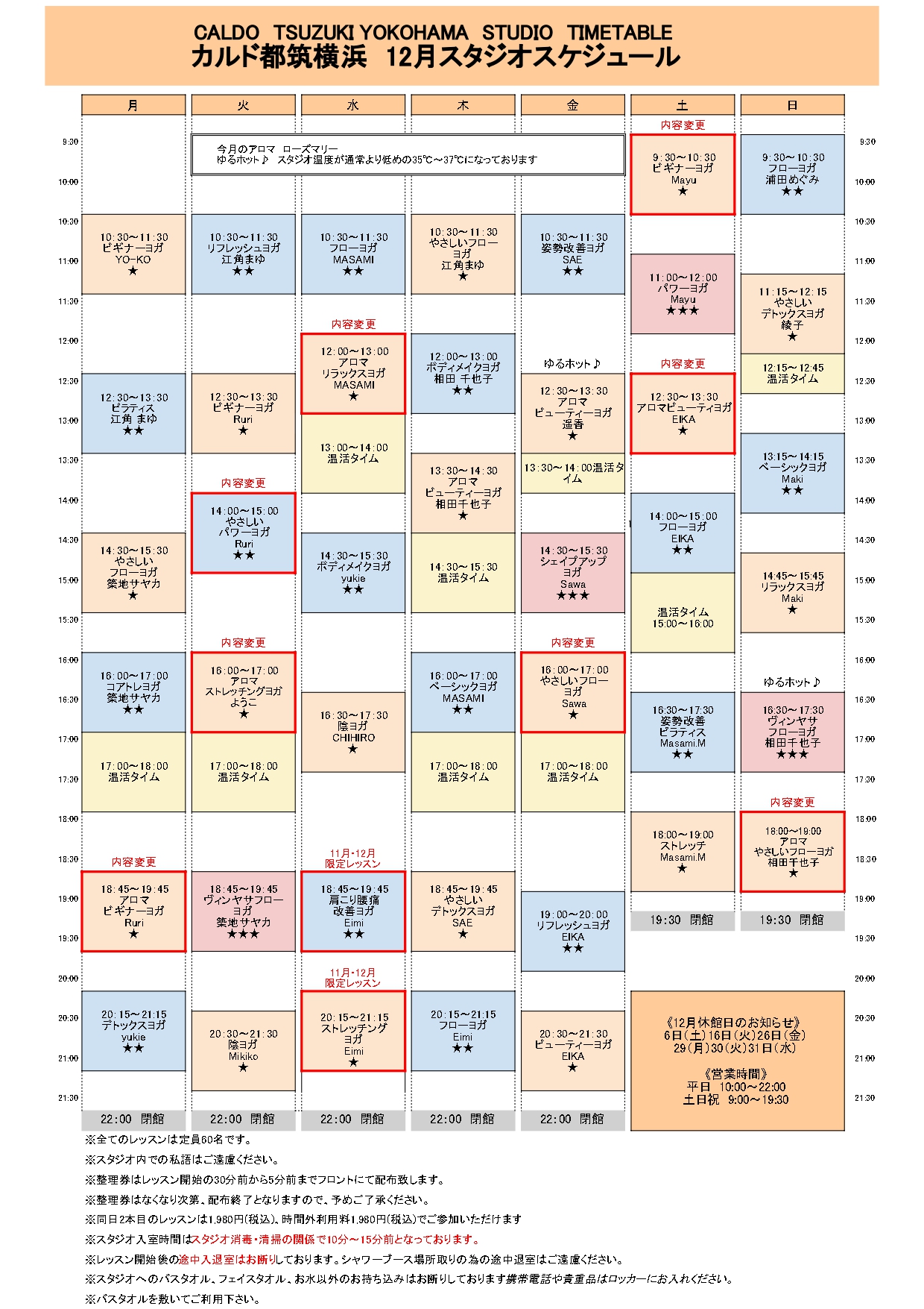 アロマの香りを感じながら、美しく健康的な身体づくりを目指したポーズを行い内面から女性らしい魅力を引き出すことのできるクラスです。