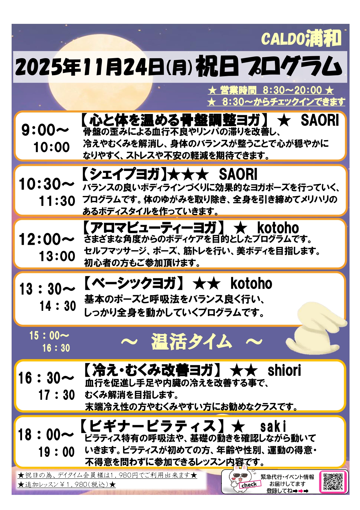 体幹を意識したポーズを流れるように行い疲れにくい身体・痩せやすい身体へと導いてくれるレッスン。それ以外にも腰痛改善・冷え性や便秘などの改善も期待出来ます。