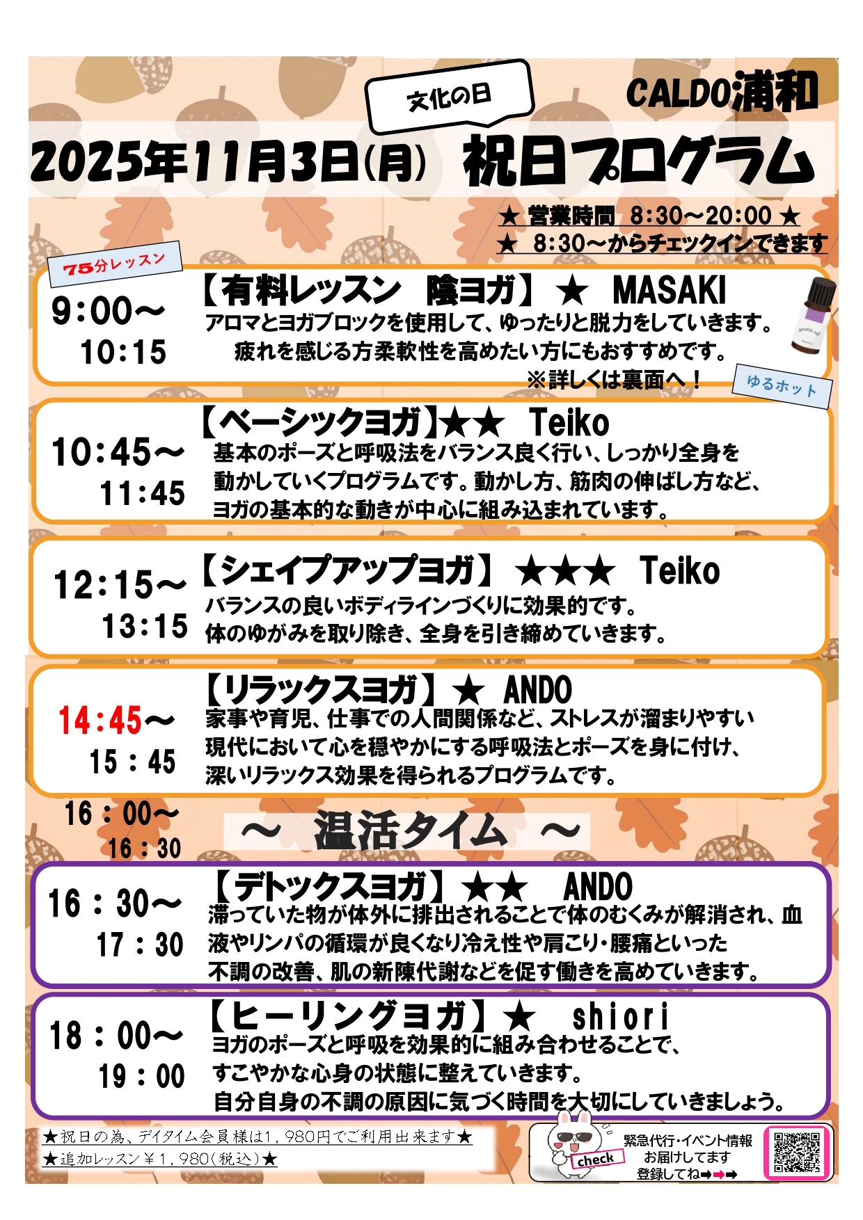 【11月3日(月・祝)】 14:45-15:45 リラックスヨガ★